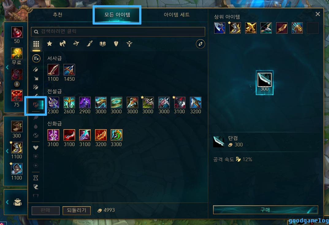 상대 챔피언을 효과적으로 피해을 입히기 위해 상점에서 구매하며, 상황에 따라서 아이템을 선택이 필요합니다.
